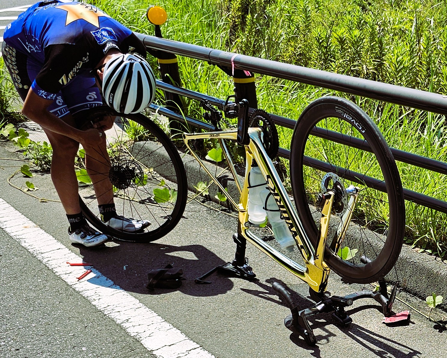 (´-`).。oOノリスケほったらかしにしてパンクどころか落車するとは・・・・