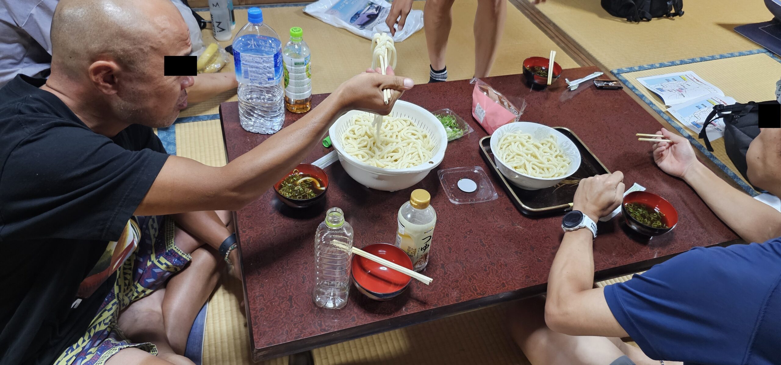 残りの3人は宿の台所でうどんをゆでて食べるそうです。