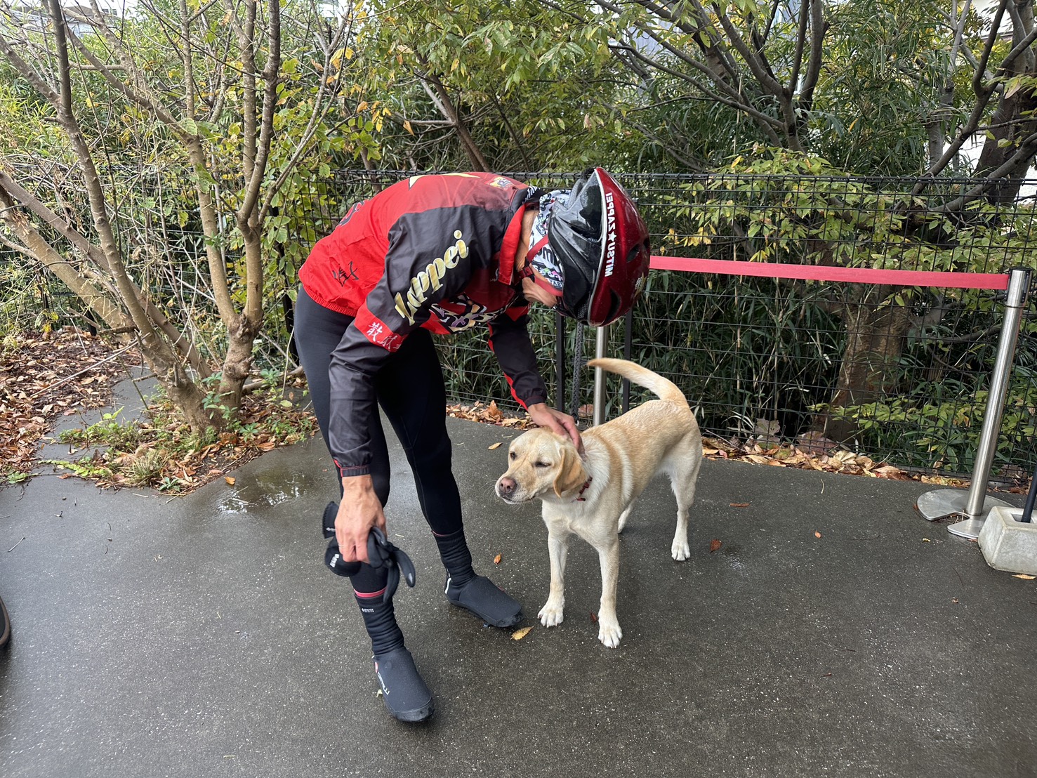 入り口でワンちゃんとたわむれて♪
