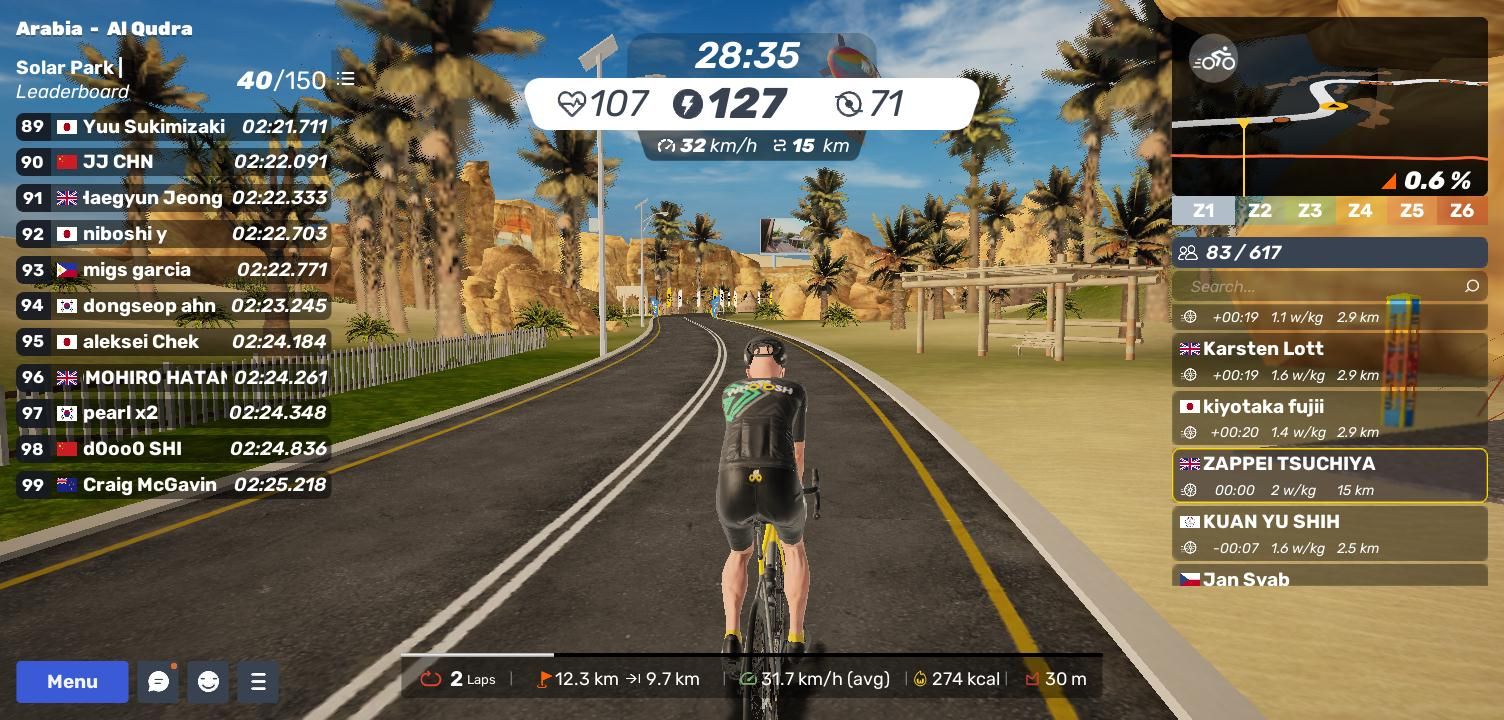 MyWhoosh の「Al Qudra」コースで軽めの回復走🚴♂️