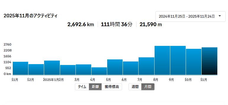 | 獲得標高 | 17,125m | 21,590m | 自分的にはかなり登りました⛰ |
