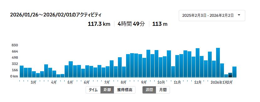 📊データ:117.3km / 4時間49分 / 獲得標高 113m / TSS101